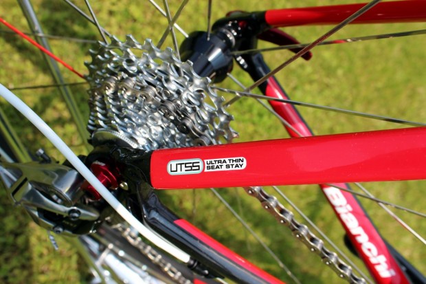 We reviewed the existing Sempre Pro earlier this year and called it “fast, responsive, lively and stiff”, and this 2014 version gets a new PressFit bottom bracket and tapered headtube (1-1/8″ to 1-1/5″) to boost the tube profiles in the downtube and headtube, thereby improving rigidity and handling. Like the Oltre XR2, it also has Bianchi’s ultra-thin seatstays.