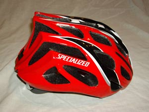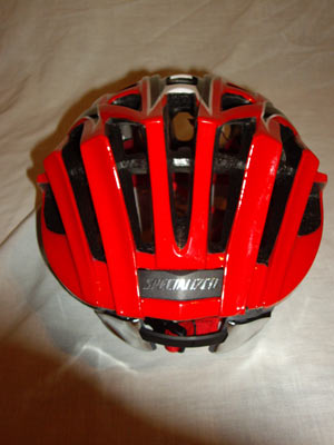 The shape of the helmet has been influenced by the fact that Specialized do not demarcate between road and mtb. As this is the case, all their helmets have an additional peak, which comes in the box. But don’t be too hasty in lobbing it into the bin, as it could come in useful on days when it is raining. Because the helmet needs to operate in both disciplines the venting shapes lie between a sleek vent, which would be used to draw air across the head and what I call a “chimney stack” shape that is a little shorter and wider, commonly used on mtb helmets. For non-racing applications this combination seems to provide an excellent compromise. Coupled with a large (but slightly ugly) exhaust port style rear end the helmet offers good levels of cooling.