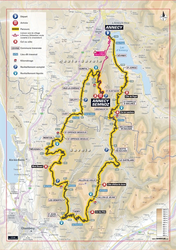 Departing Annecy town centre at 10am, I followed the excellent cycle path along the shores of the stunning Lake Annecy, until arriving at the small lakeside town of St-Jorioz. The actual event will take place on the main road, a flat 7.5km run, before turning south at St-Jorioz and hitting the first climb.