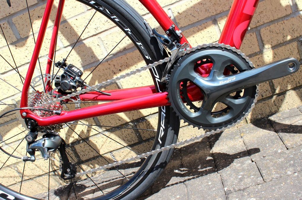 The entry-level model, the Datum 10, is the machine pictured here and has a striking ‘post box red’ paintjob. The frame is dressed in a Shimano Tiagra groupset, TRP Hy/Rd disc brakes, Fulcrum Racing Sport DB CX wheels and new 33mm Challenge Strada Biancha tyres for £1,799.99.