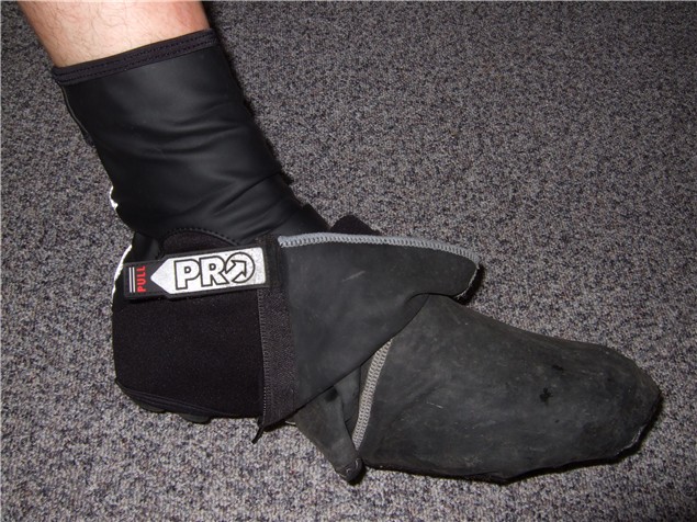 The last two variations on this theme have been the most successful and have been based on the not very original idea of wearing two pairs of overshoes at once. For this to work at all, the inner pair must be very thin and tight fitting. Step forward Prendas Ciclismo with overshoes that might have been designed for the task.