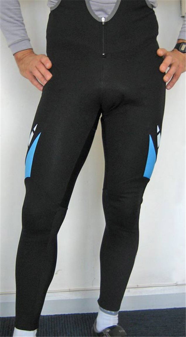 Now, I’m old and ugly enough to know better than to ride with exposed knees at this time of year but for reasons to do with not liking to feel too ‘bundled up’, I generally favour bib-knicks over full-length tights even in mid-winter. The former offer a bit more pedalling freedom and don’t suffer the gravity-induced tendency to fall slowly and steadily down a few millimetres over every bump, at the same time forming a saddle-snagging pendant gusset between the thighs. The latter, on the other hand, are a lot warmer…