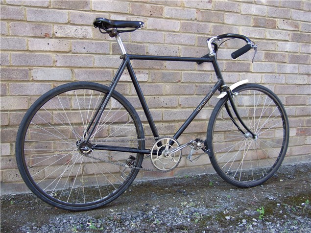 Something of around five miles with barely a rise in it and a pint at the end is that journey. Recently, annoyed at the way the toe clips dragged when starting off, I removed them. Riding fixed wheel without feet firmly attached to the pedals is normally frowned upon, since losing a pedal at speed is easy while regaining a footing is not, but in this case it is not a problem. If anything, Cyril is nicer to ride without the toe clips and bikes of this vintage would have been ridden that way by many owners when new. It’s a great chance to practice good ankling technique…