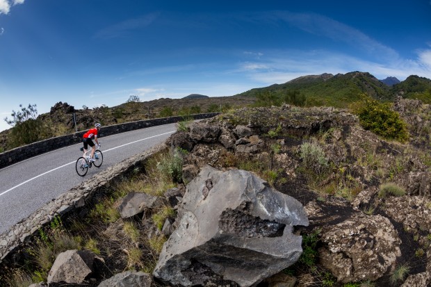 The 1,200m ascent from the hotel of the Shimano press camp to road’s end at 1,835m when scaling Mount Etna from the south side is the hardest climb I’ve tackled: harder even than the Alpine climbs of La Plagne, the Col de la Madelaine, and the Cormet de Roselend.