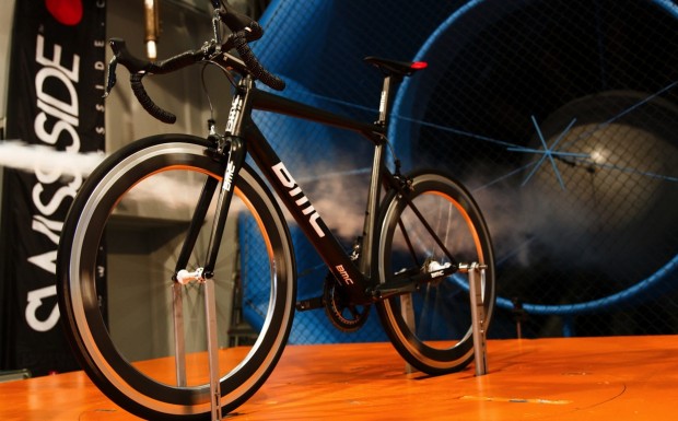 Philips rides away on a set of all-new 62mm carbon-alloy clinchers inspired by Switzerland’s Hadron Particle Collider and claimed to be one of the world’s most aerodynamic wheelsets.