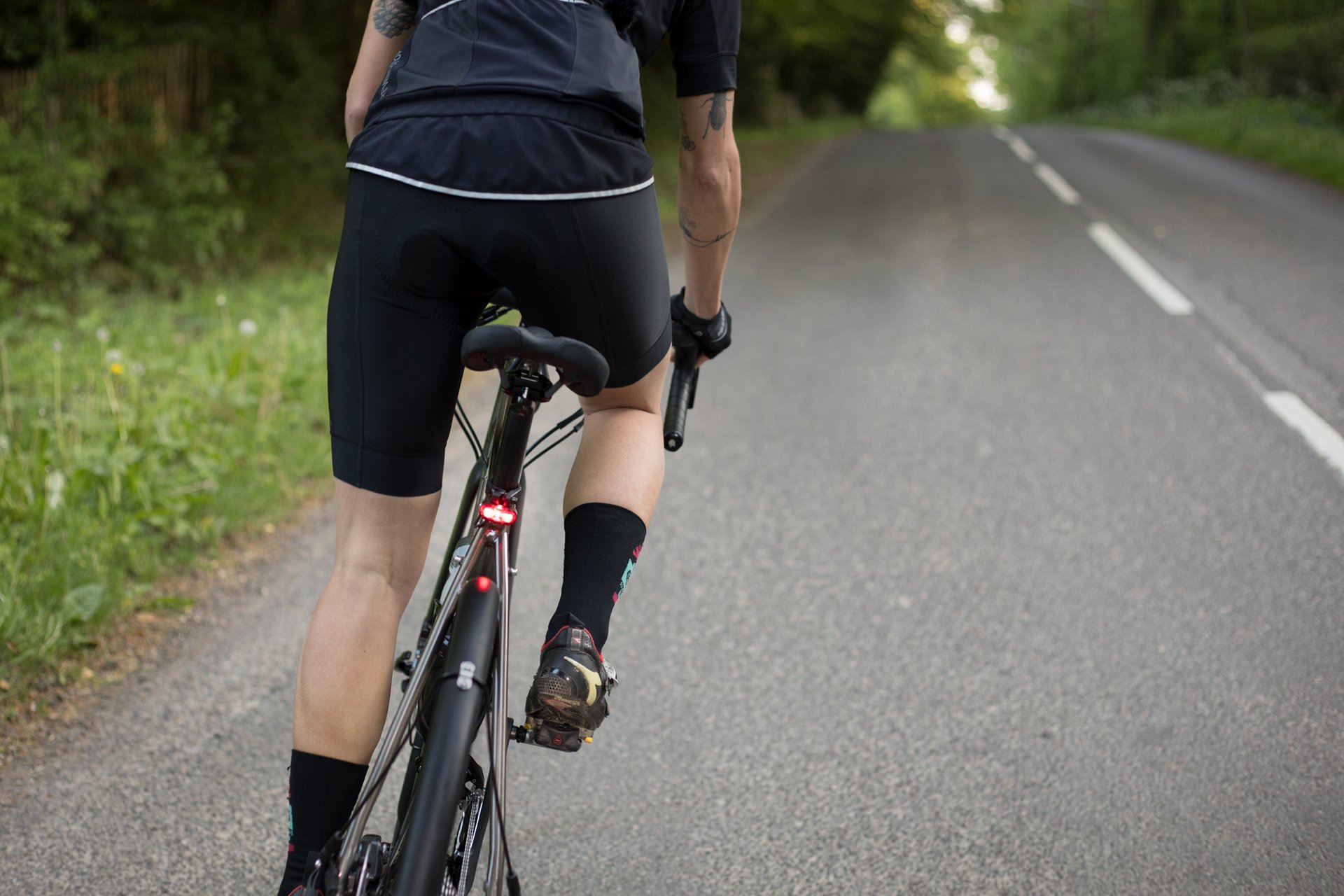“Being seen is so important in evenings and at night but often I like to just jump on a bike with my normal clothes on, knowing the bike is visible and [the Lithium] makes that so easy,” adds Olsen.