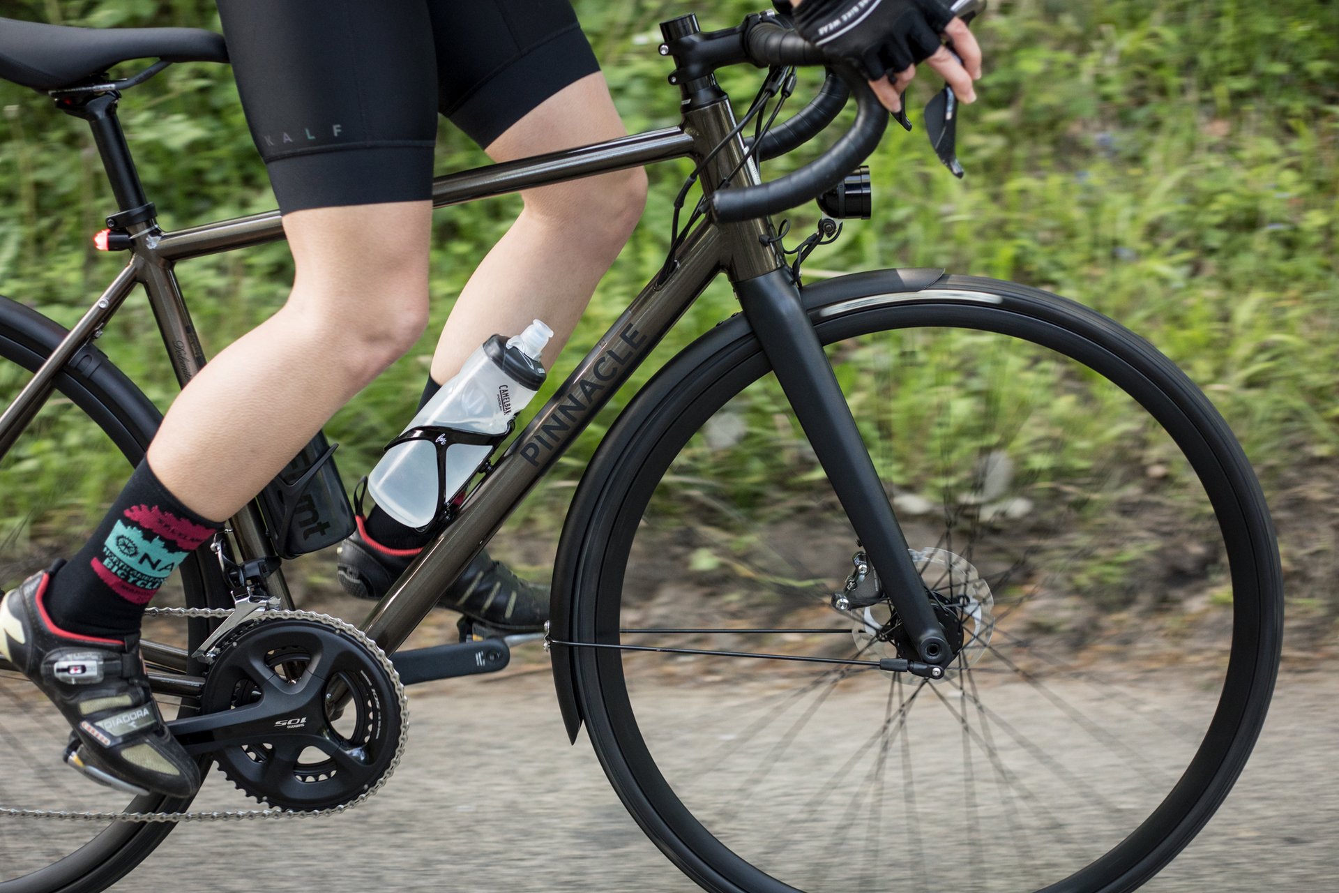 Pinnacle’s Dolomite 10th Year Limited Edition road bike includes dynamo front and rear lights, as well as full mudguards. The ideal year-round bike?(Pic: Evans Cycles)