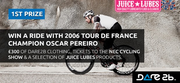 We’ve teamed up with dare2b to give you the chance to win a ride with 2006 Tour de France champion Oscar Pereiro, co-designer of the clothing manufacturer’s signature collection.