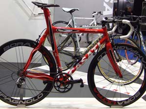 Meanwhile, on the other side of the booth, the 2008 “Arte” was drawing admiring glances. This “Colnago for the masses” sports a scandium frame with carbon stays and a mix of Shimano 105 and FSA parts. With looks like these, who cares if it’s made in Taiwan?