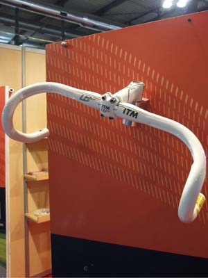 ITM saved the debut of this new Bianco bar/stem combo for the Milan Show. A CNC’d aluminium stem is mated to a carbon/alu bar. Expect to see it in the shops in time for the Giro 2008.
