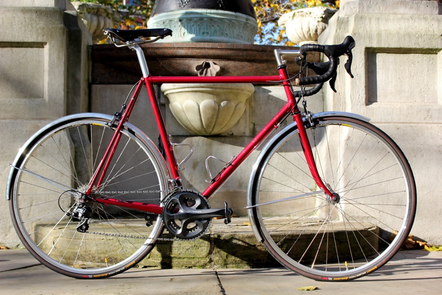 Other pleasing details among the many on this machine includes the silver union jack decal on the seat tube, the Arundel stainless steel bottle cages, and Velo Orange mudguards.