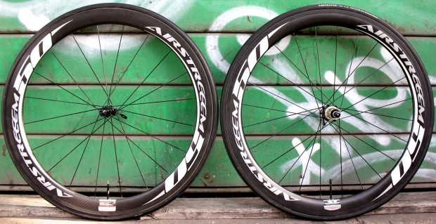 The Airstreeem Aero 50 carbon tubular wheelset offers stiffness and stable aerodynamic performance in a lightweight package.
