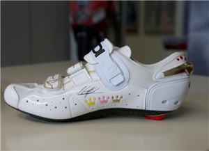 But that isn’t the interesting part. Any shoe for a champion wouldn’t be complete without a bit of special customisation, and also to celebrate 50 years of Sidi Sport in 2010, there are new graphics to make them stand out in the peloton. A full white cover is enhanced with gold finishing on the uppers; the technical closure and heel are completed with graphics featuring three crowns: yellow, red and gold to commemorate his three respective victories in the Tour de France, the Giro d’Italia and the Vuelta a España.