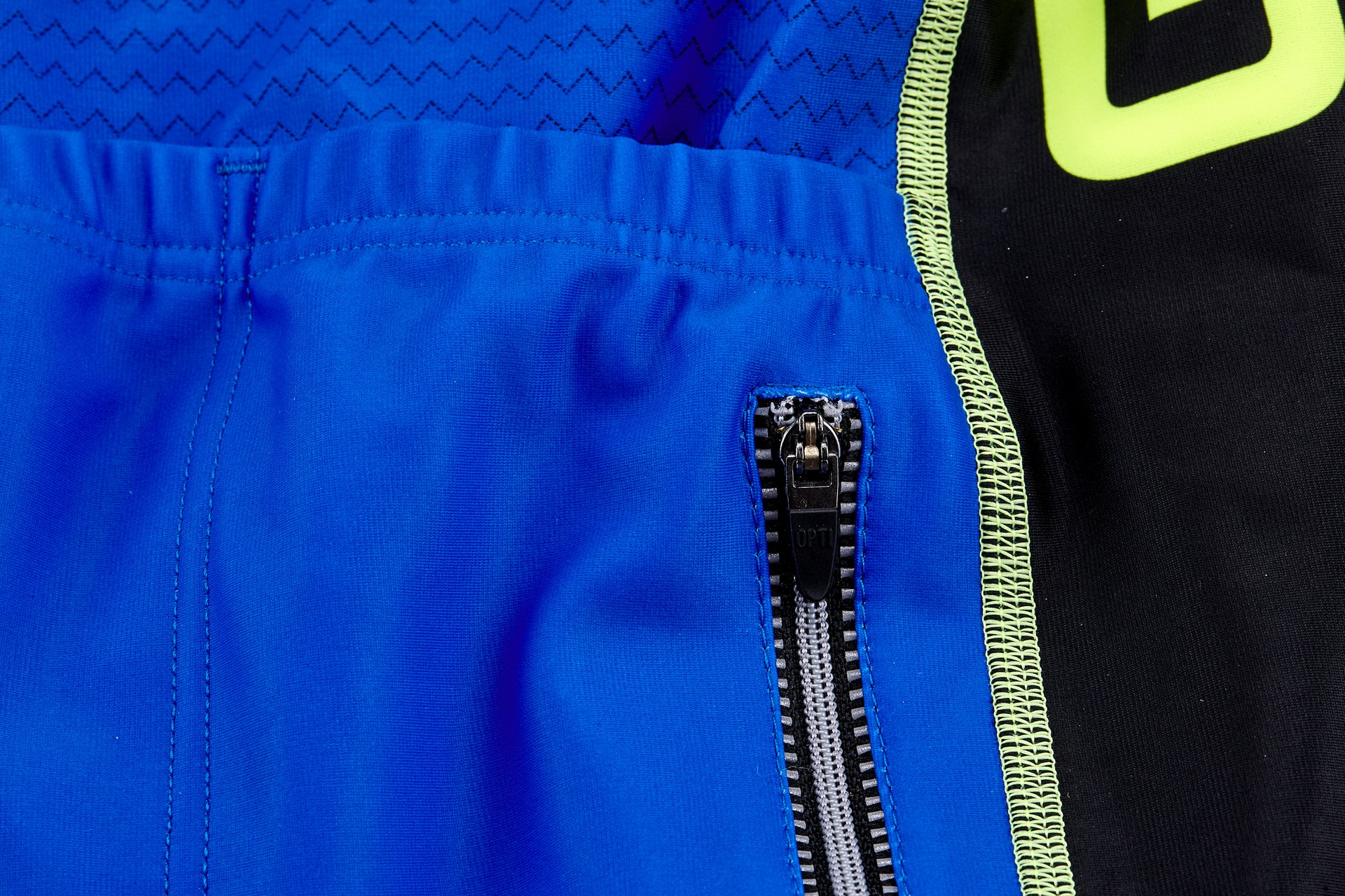 First up is the PRR Bering Long Sleeve Jersey. Made as a legit winter option, it has thermal fleece fabric on the inside to ensure you stay warm, and couples that with a high collar and long cuffs so heat doesn’t escape from anywhere. In all honestly it’s a little more like a light jacket than a long sleeve jersey as it adds a good level of protection and certainly enough to be used as an outer layer, with solid layering between, even when the weather gets down to single figures. The swoop cut hem is what Alé call the ‘J-stability system’, made to move with the body as you bend down into more aggressive riding positions, and it won’t bunch because it’s cut shorter in the section where the body and thighs move closest as you pedal.