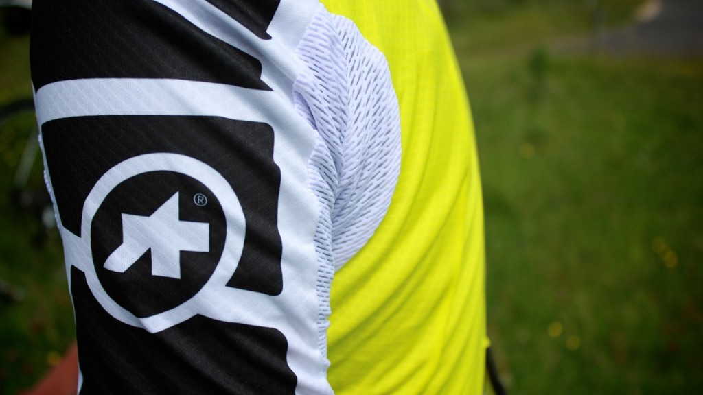 The jersey is a little thicker to touch than many summer jerseys, but rarely feels so once its on. The main fabric, which Assos call Type.vX121, is lightweight and made up of three layers – a mesh covered on either side –  which ensure that sweat is quickly moved away from the skin (helped by the underarm mesh sections).