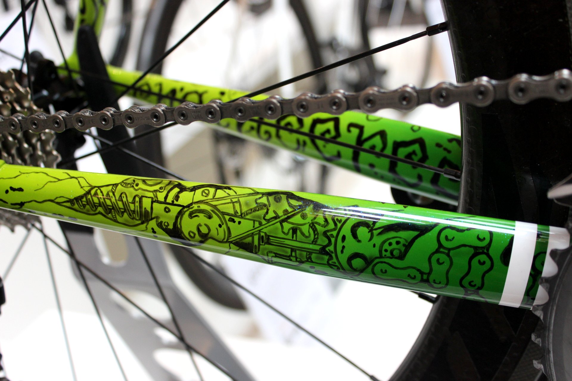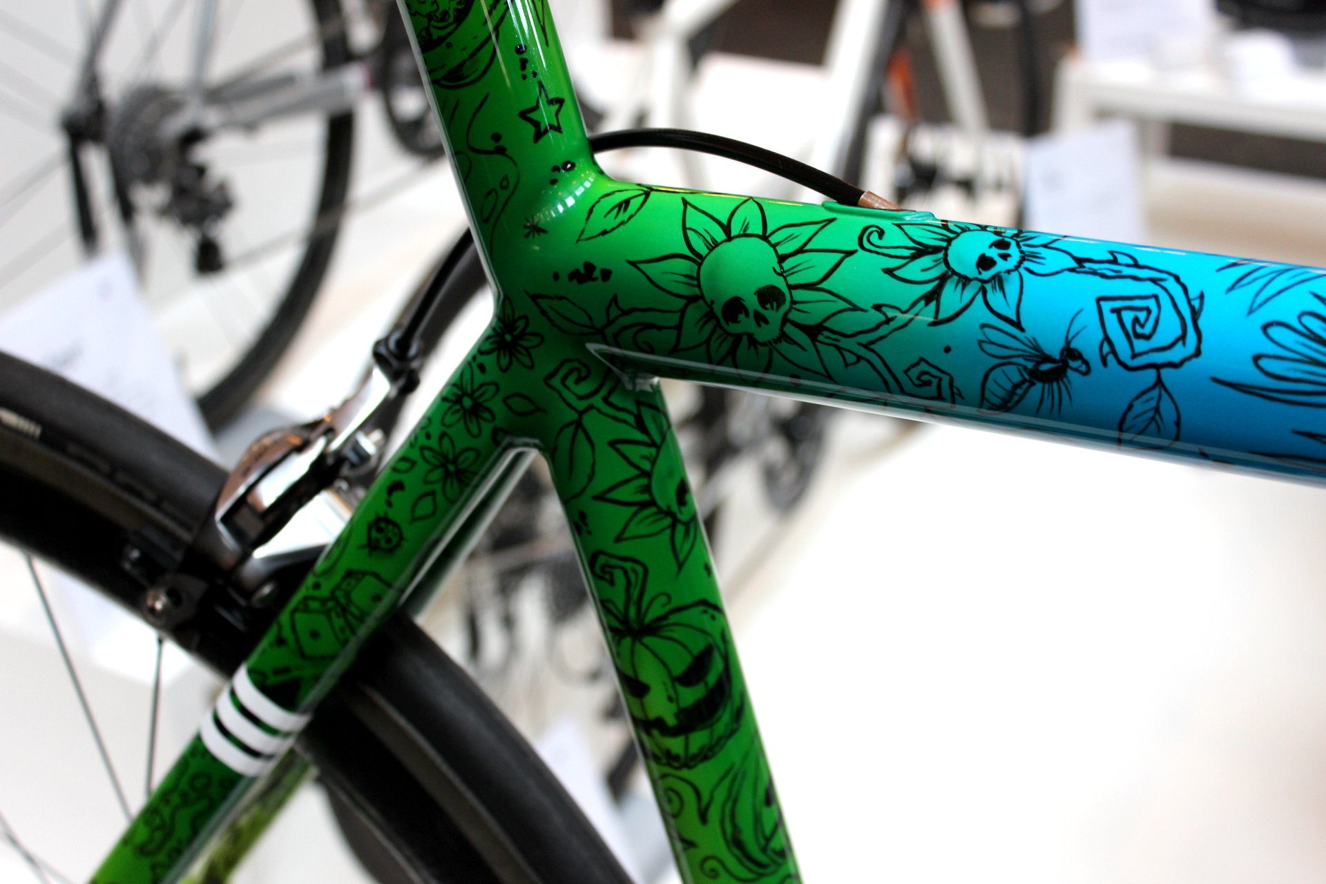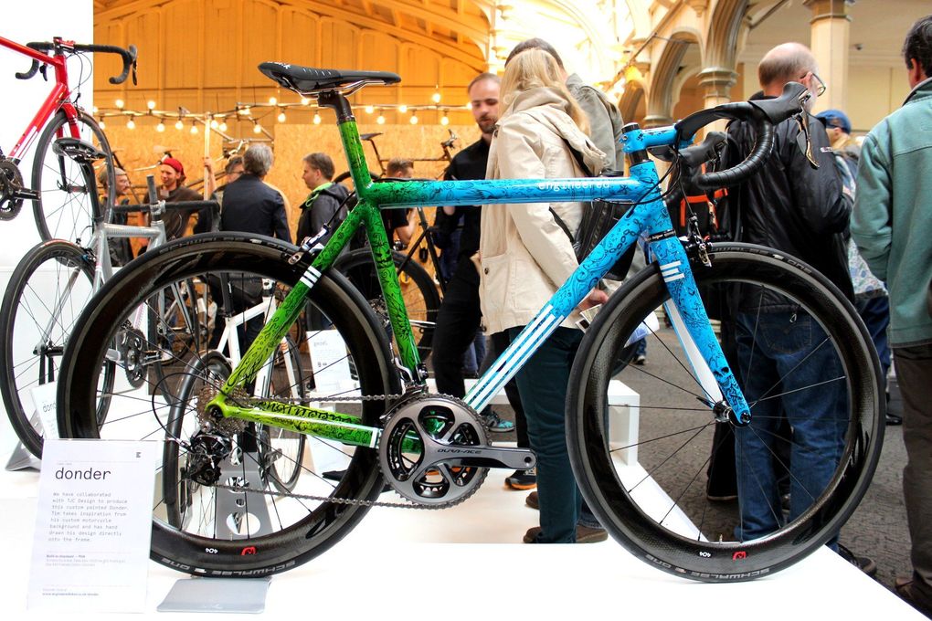 If one bike attracted more attention than any at Bespoked it was this Engineered Bicycles Dondor, thanks to the hand-painted, one-off finish by Bristol artist Tim Cox.