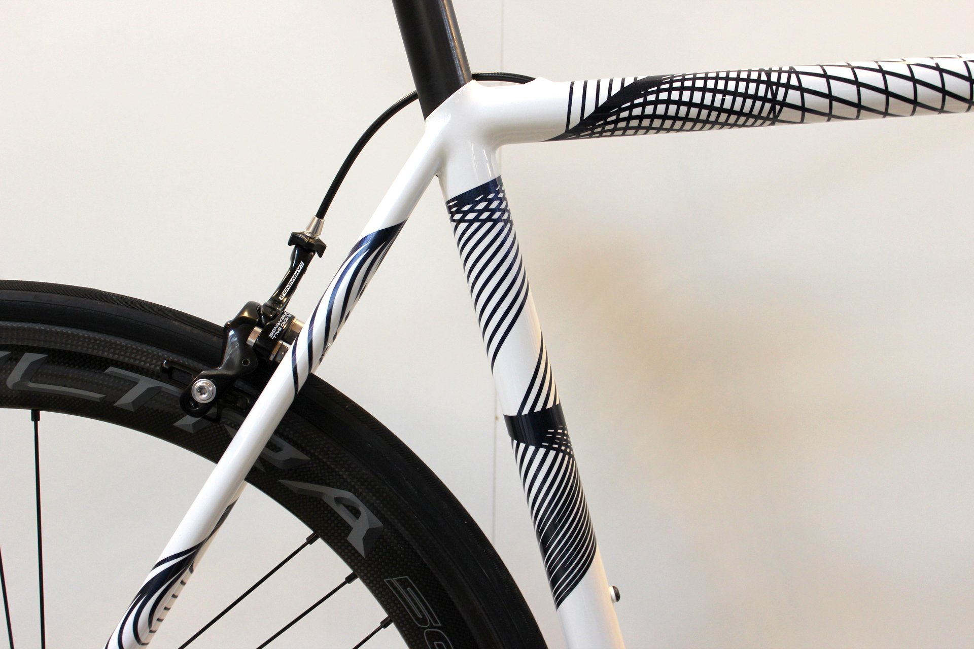 Sowter has used a pinch bolt at the top of the seatstays to hold the seatpost in place without compromising the clean lines of the frame, while the paint finish takes inspiration from his favourite tattoo artist, Chaim Machlev of Dots to Lines. “His designs are known for a powerful yet ordered symmetry that works as well on the bike as it does on the human body,” Sowter says.