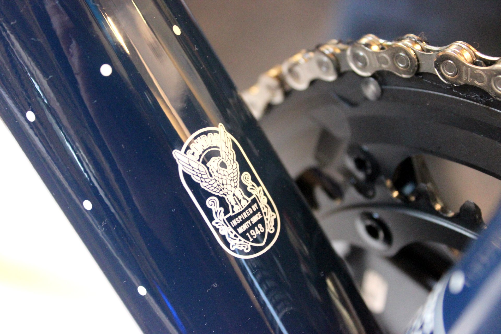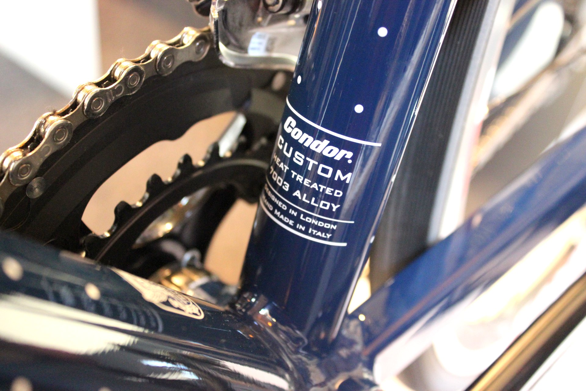 It’s undoubtedly a looker, with a blue polka dot finish, and is made from a 7000-series aluminium tubeset. The Italia RC is based on the same geometry as the Leggero carbon race bike and is described by Condor as a machine “designed for riders who want to compete, train and go fast on their bikes.”