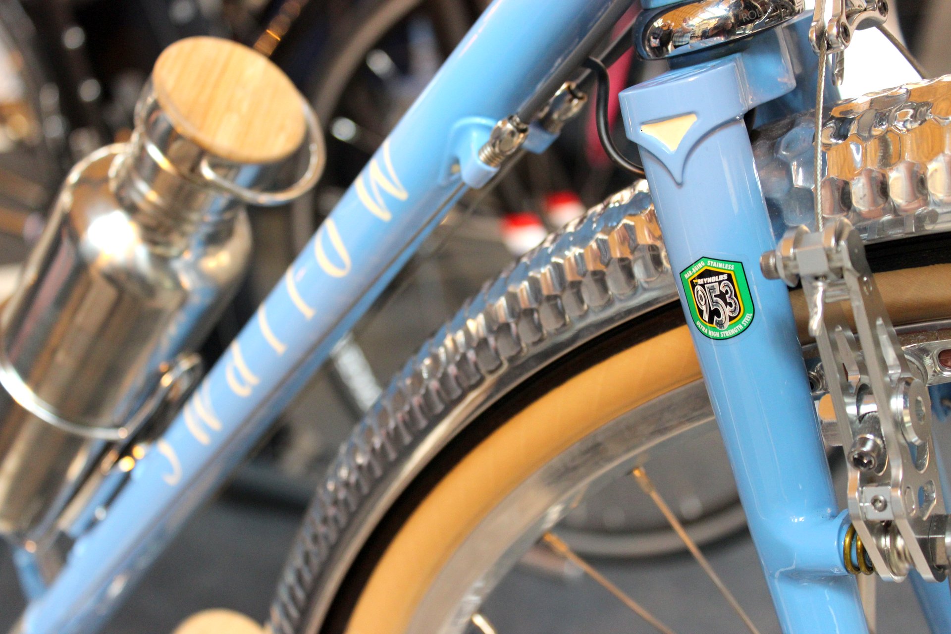 And Swallow Bespoke Bicycles were keen to show that, with a stand which included a belt drive tourer/commuter with Shimano Di2, a tandem, a stainless steel race bike and this bike, which harks back to an altogether different era.