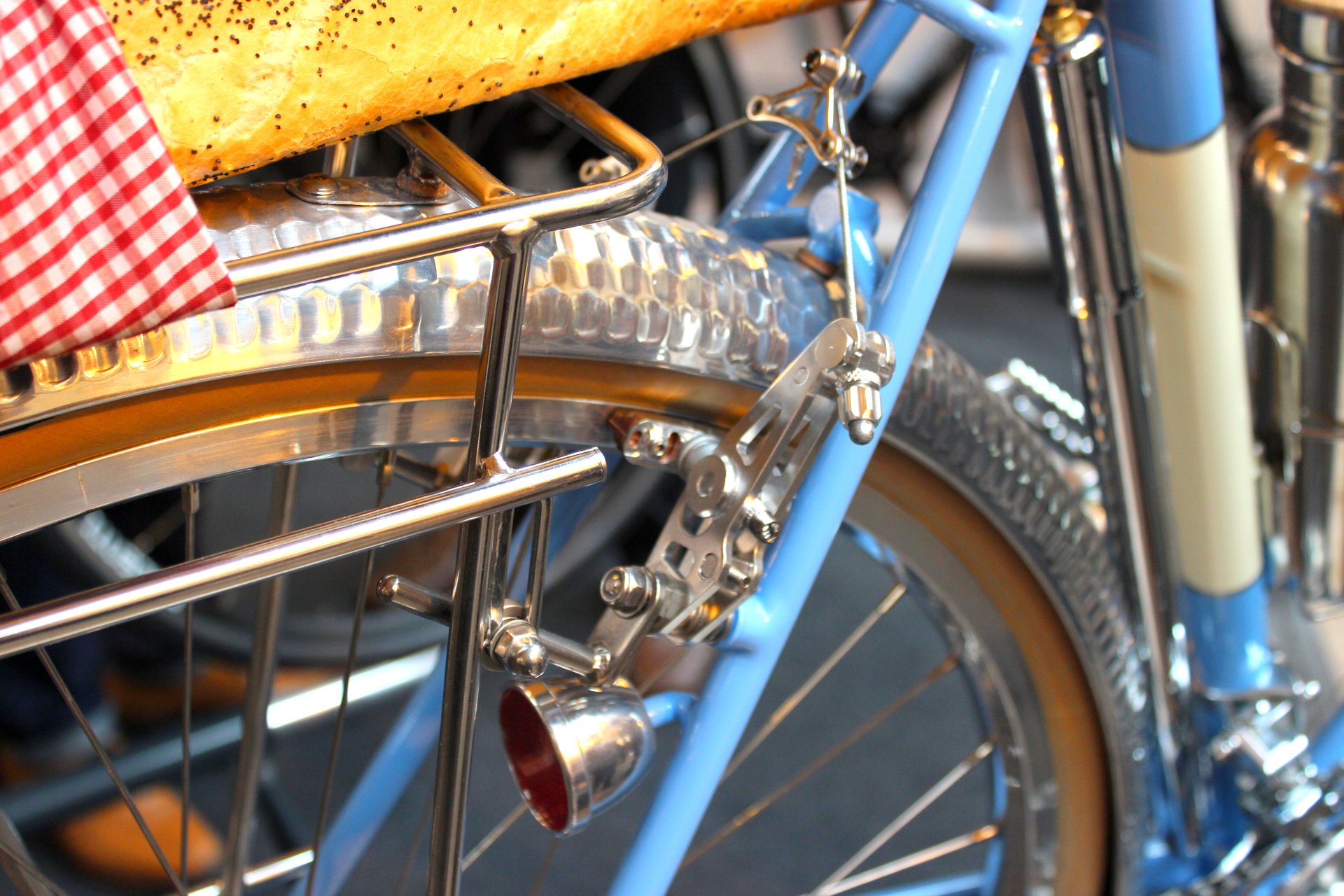 The cyclo-tourist machine came to the show straight from the workshop having just been finished and was built for a long-time customer, who had previously ridden a vintage bike from home near Telford to the Loire Valley for the Velo-Vintage festival – a celebration of bikes exactly like this. The frame combines stainless steel tubing and a build which includes both new and reproduction parts.