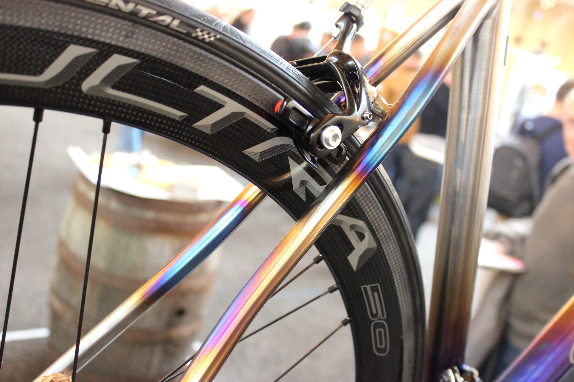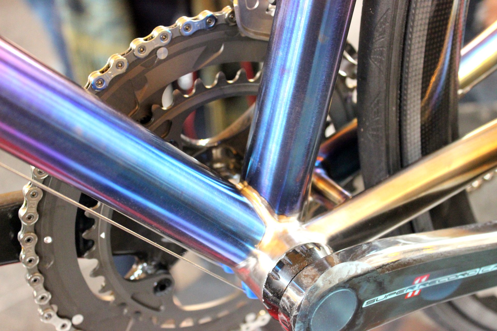 It’s made from titanium and Konishi has also hand-produced the saddle from ti. Oh, and the handlebar, too.