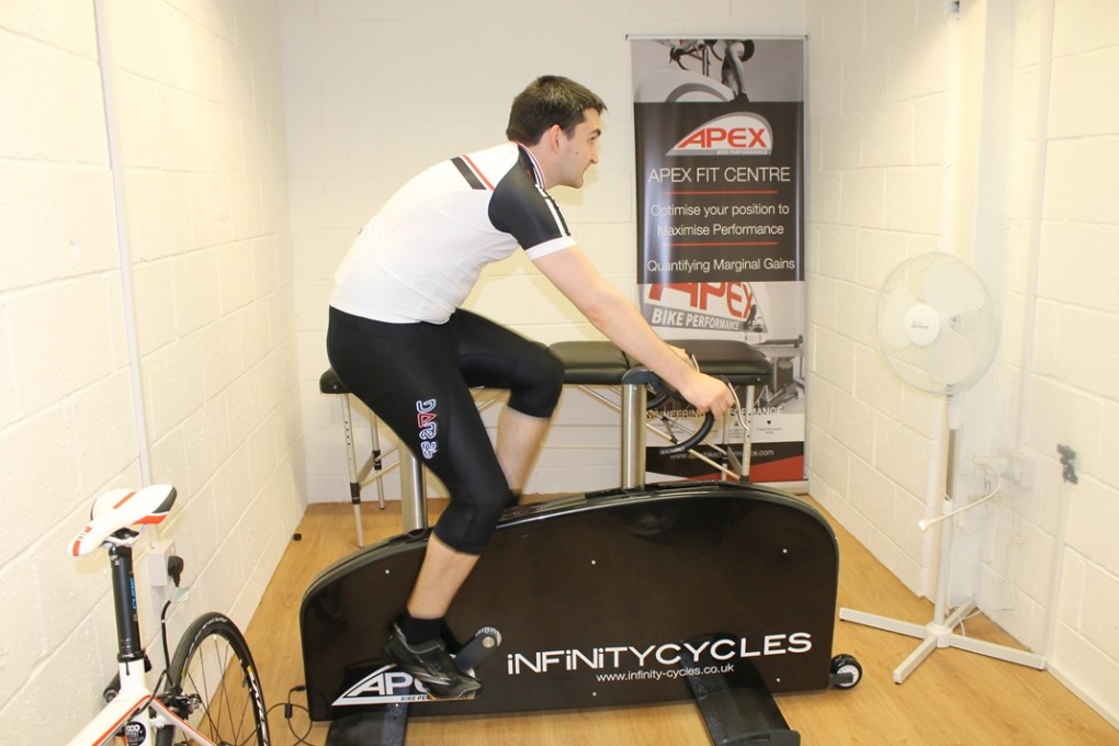 Cube and Infinity Cycles use the Apex Bike Performance Fitting System. It ‘quantifies the marginal gains’ according to the poster up in the fitting room, though it is fair to say I will be needing more than just some marginal gains if my measurements are anything to go by.