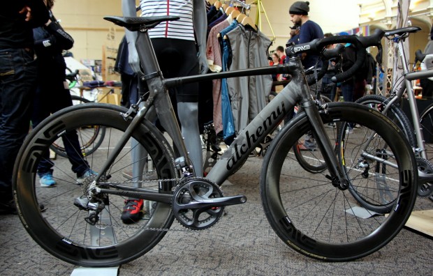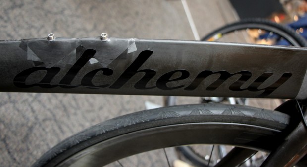 Alchemy are based in Denver, Colorado, and build in carbon fibre, stainless steel and titanium, with a six-strong road range, two cyclo-cross frames and two mountain bikes. The brand, which was established in 2008, is new to Mosquito’s shop floor and they had two of Alchemy’s carbon fibre road machines to show us.