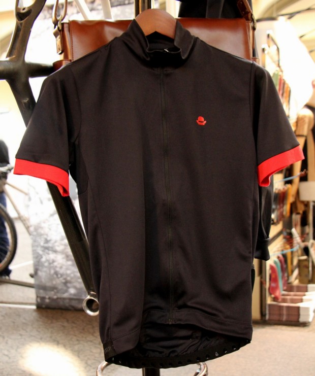 The Etape jersey is available in black and red, as pictured, or black and white. Chapeau’s bowler hat logo features across the range.
