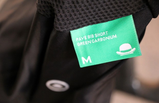 The debut range includes three bib shorts: the entry-level Classic bib short is priced at £59.99 and comes with a TMF pad, while the premium Pave bib short is £119.99, and, interestingly, is available with a choice of two Carbonium pads. The green label here denotes that the chamois used on these shorts is best suited to the upright riding position preferred by sportive riders, while shorts with a red label come with a thinner pad for those who can hold a lower, racing position.