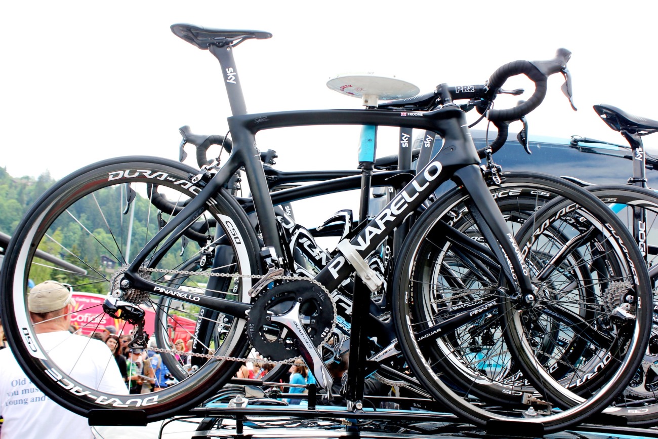 Eye-catching machines including Sir Bradley Wiggins' Union Jack-themed Pinarello Bolide