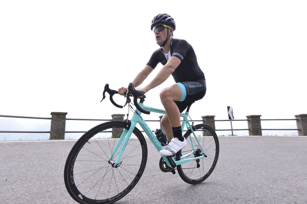 The purpose was a first ride on Bianchi’s new Specialissima, a super lightweight climber’s bike infused with more than a little of that classic (and possibly clichéd) Italian flair. Either way, the Specialissima cuts a striking figure, with my test bike being fully painted up in the new CK16 version of the iconic Bianchi celeste colour, designed to be more ‘flouro’ than the standard shade.
