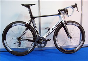 Highlight was the aero road bike AC1 SL. A T1000/T800 high modulus carbon fibre frame weighs 1.1kg but uses “SFT2 Super Flow Tube Tech” to enhance the frames aerodynamic properties, which you can see in the curved downtube, internal cable routing very neatly fed into the tubeset behind the stem, an aero seatpost and concealed seat clamp, and teardrop shaped tubes. A BB30 bottom bracket is used along with a standard 1 1/8 headtube.