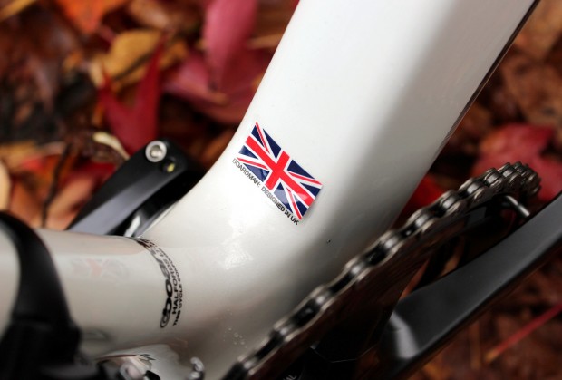 The frame, available in ‘pearlescent white’ only, is made from Toray T700 carbon fibre for a claimed weight of 980g. A carbon fibre fork slots into the 1-1/8″-1-1/2″ tapered headtube and all cables run internally.