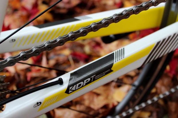 The race-inspired geometry continues with matching 73 degree head and seattube angles, and compact 405mm chainstays, while the sloping toptube and short 505mm seatube combine to leave plenty of seatpost exposed.