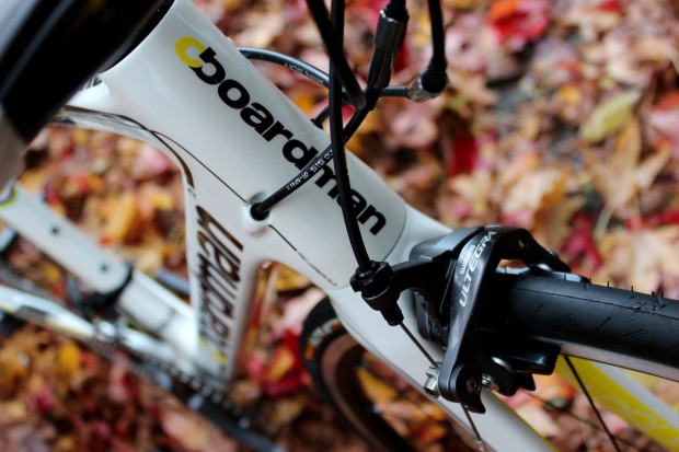 Is it unduly aggressive? That depends on the rider’s flexibility and position, but the mainstream appeal of a range of Boardman bikes sold through Halfords means a slightly taller headtube would make it easier for more riders to find a comfortable position, without turning a race bike into a sportive bike, or using a stack of spacers on the fork steerer.