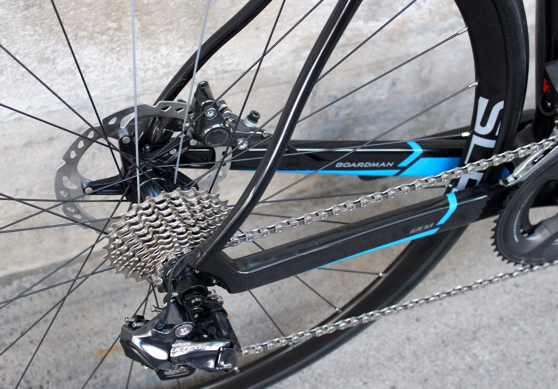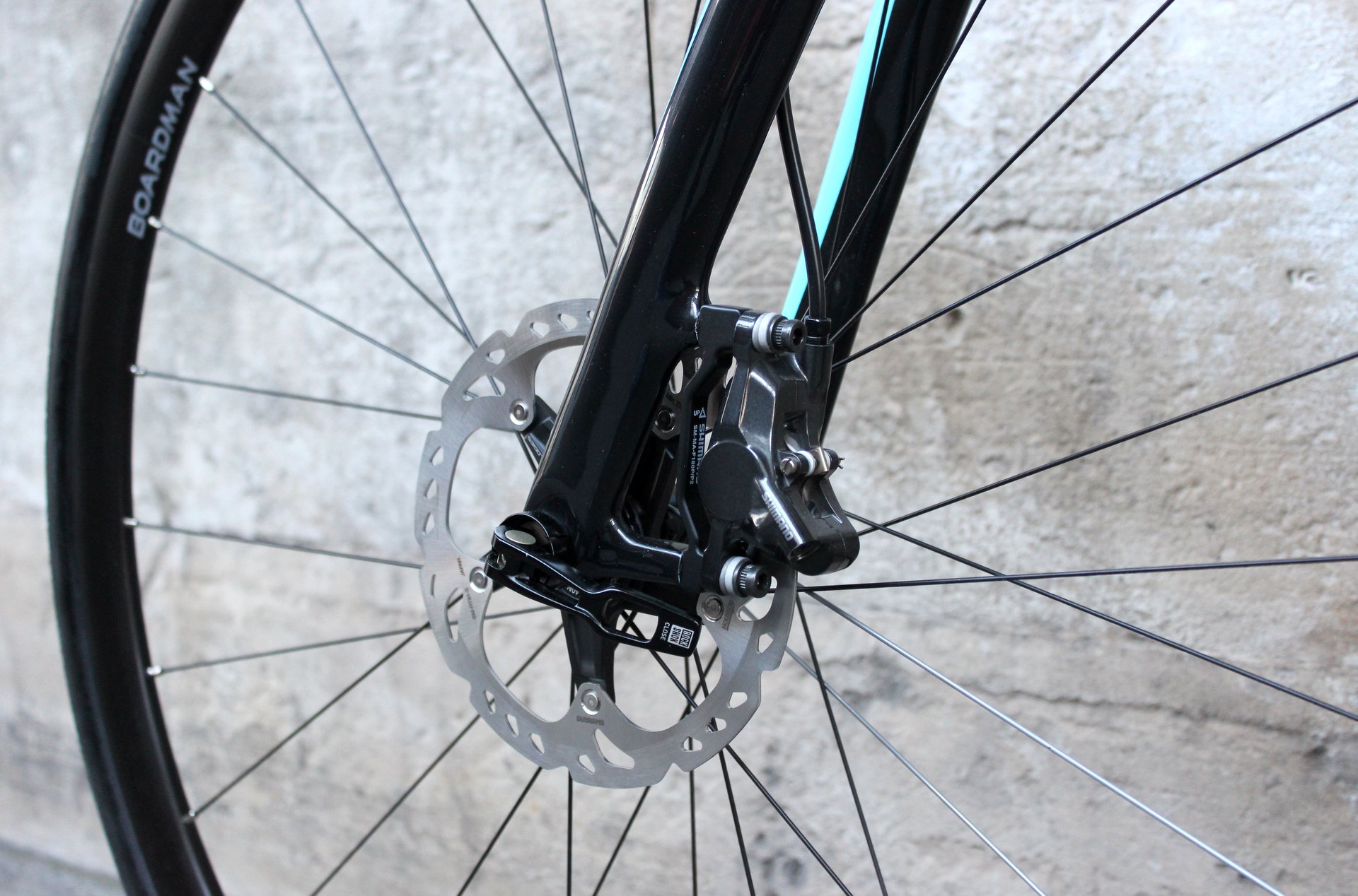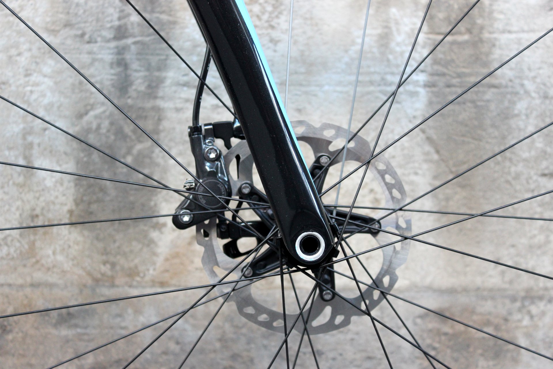 The 9.4 was developed before Shimano launched its flat mount open standard for disc brakes, so instead of the calipers bolting flush onto the fork and frame, they’re attached to adapters that sit on posts. If you’re in the market for an endurance bike now, you may see that as a shortcoming but the post-mount calipers on the 9.4 are hardly an eyesore – compared to those hoods – and lack nothing on the performance front. And should you want to swap or upgrade the brakes you’re unlikely to struggle to find suitable adapters for a few years yet, so it’s nothing you need worry about.