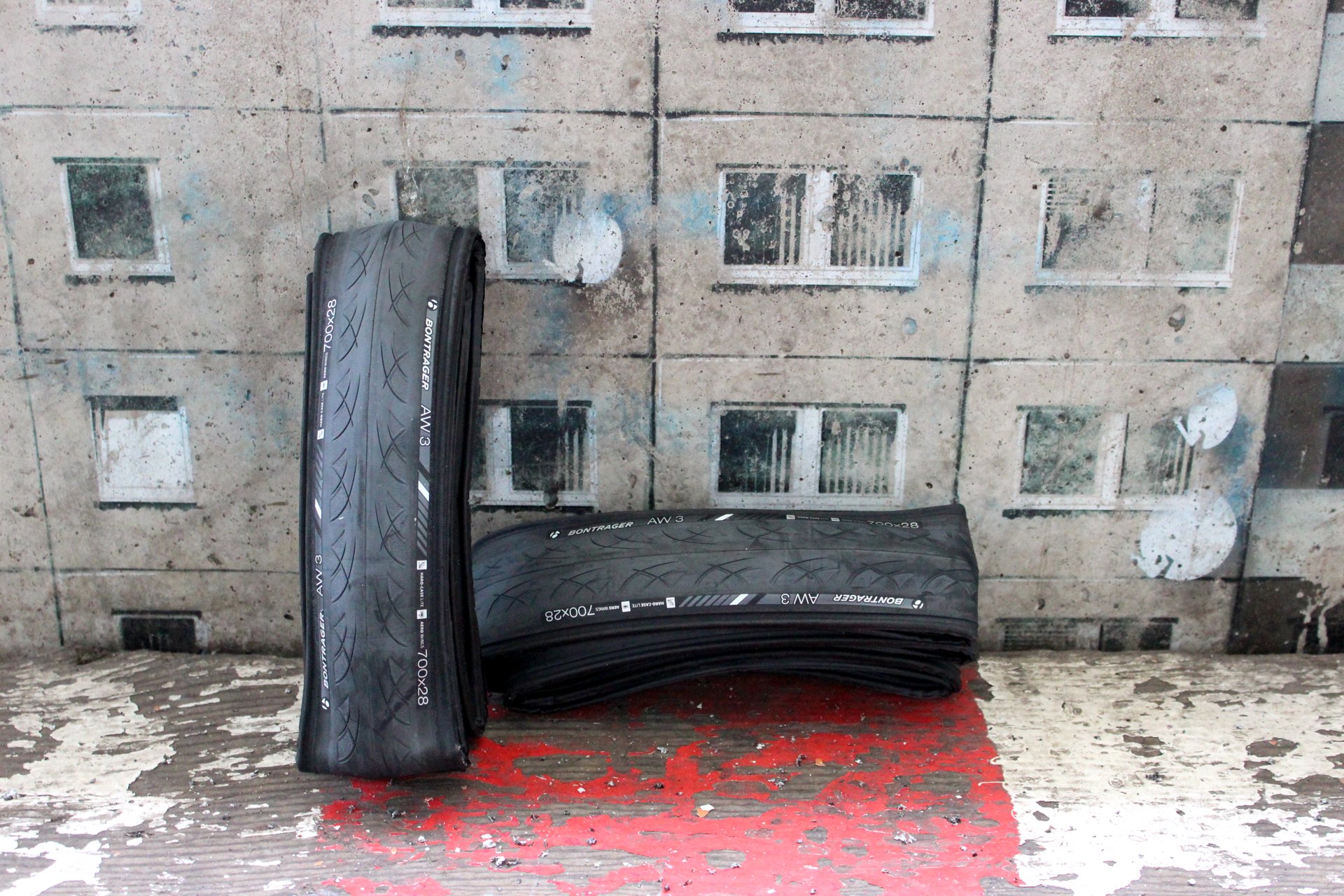 Taking square aim at the all-weather tyre market here, then, is the Bontrager AW3 Hard-Case Lite road tyre (AW3s for short). As with many tyres of this type, it claims to give optimal grip in sub-optimal conditions, throwing in decent levels of puncture protection and low rolling resistance too, naturally.