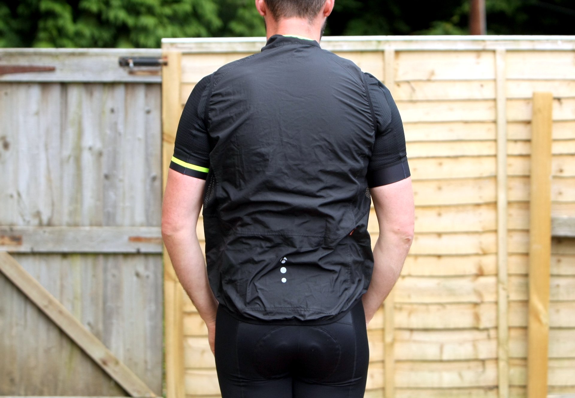 The first important thing to note about this gilet (we’ll call it a gilet from now on, not a vest) is the fit is excellent. It’s not a super-close cut but, crucially, it is close in the right places (notably around the back of the neck and under the arms) and minimises the opportunity for air to get trapped. There’s nothing more annoying that pulling on a protective windproof layer, only to feel like that windproofing is working again you by dragging you to a standstill.