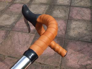 In order to make the required length from a naturally size-limited material, shorter strips of leather are stitched end to end. So neatly is this done that it does not intrude on the finished appearance of the tape on the bar, although perfectionists may want to reposition the tape during application in order to hide the seams on the underside of the bars.