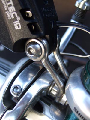 A substantial mounting bracket in stainless steel rod is provided. RCUK tried using a flimsy pressed steel bracket to save weight, but went back to the original when the substitute cracked through fatigue. A longer top hat brake nut may be needed since the bracket displaces the front brake by about 3mm. It allows accurate angle adjustment when fitting the lamp, with the headlight adjuster then useful for fine tuning on the move. We powered the lamp using double axis wire from Shimano’s dynamo hub, omitting a rear in favour of the reliable and flexible LED option.