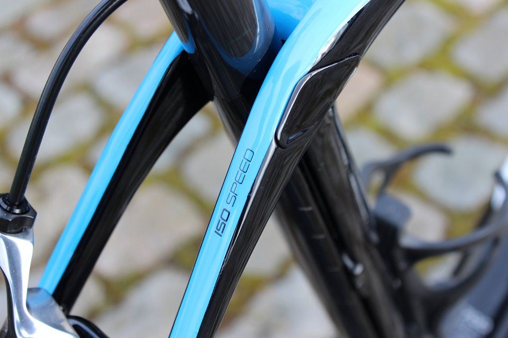 The frame shares a similar design to the Dogma F8 but with the DSS 1.0 (Dogma Suspension System) seatstays and flat ‘Flexstay’ chainstays. Pinarello called the K8-S and its suspension system “game-changing” at launch and while that may be over doing it, it’s an interesting bit of tech nonetheless.