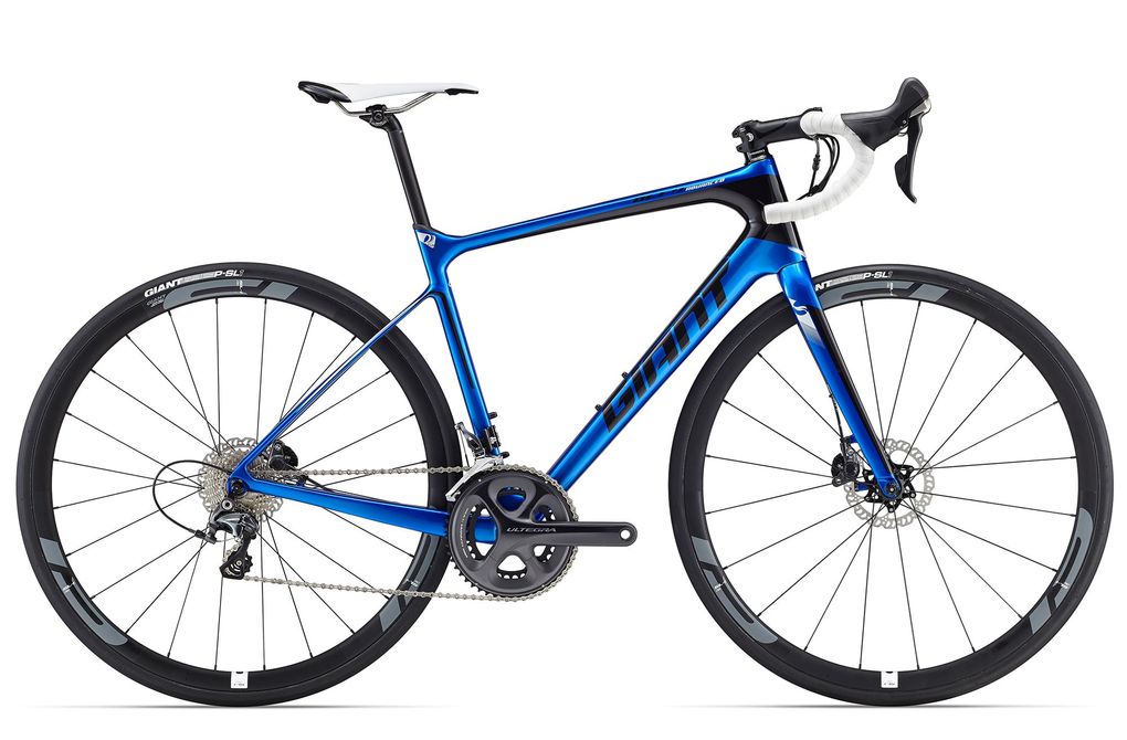 Giant’s carbon Defy endurance bikes are only available with disc brakes