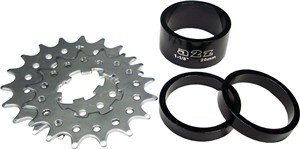 The kit contains 16t and 18t sprockets offering a choice of ratios. A similar single speed convertor for Shimano 8/9 speed free hubs is also available. Both are priced at £14.95 and may be obtained through www.windwave.co.uk .