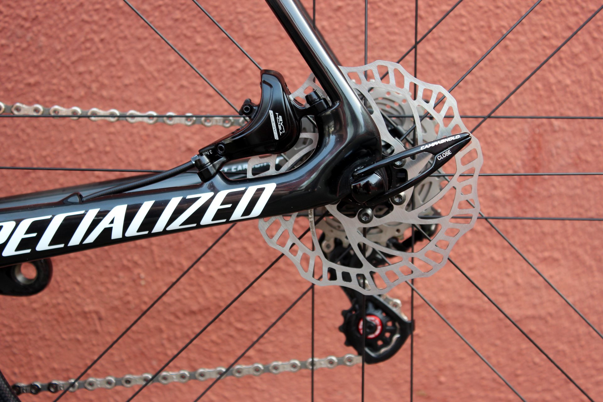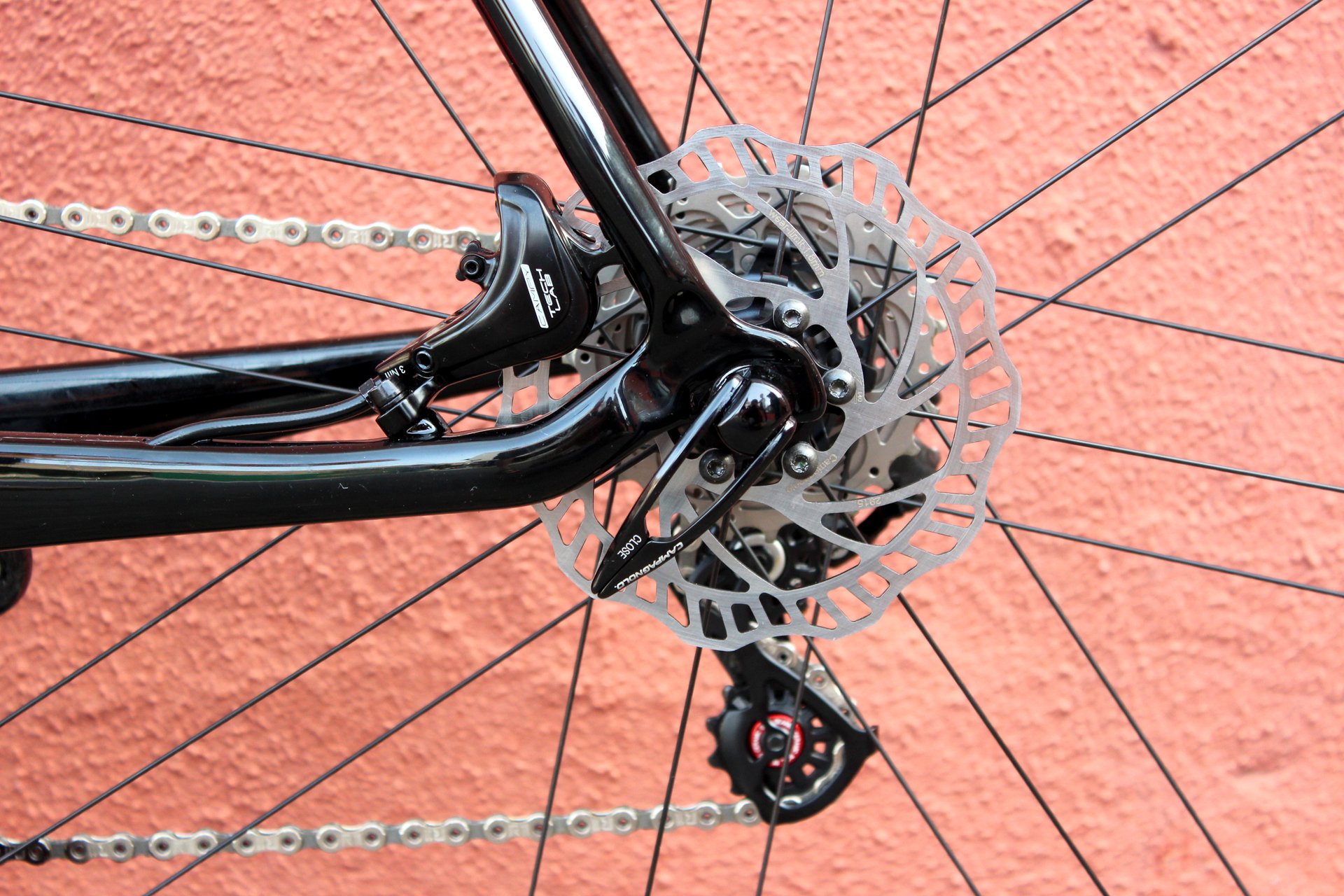 Except they haven’t. Instead, the Italian grand masters have confirmed they are working on a disc brake groupset – dubbed the Campagnolo Disc Brake Project – and it’s likely to be finished this year. They are remaining extremely tight-lipped on the details – though we were invited to a pre-launch event to look at (but not ride) three working prototypes.