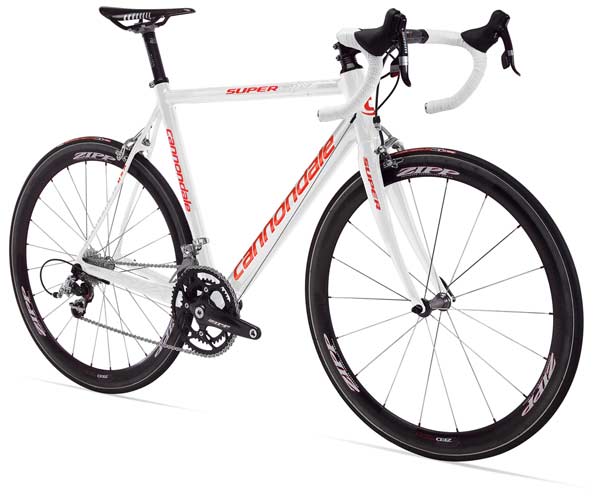 The model pictured costs a credit crunch unfriendly £7,999! But… you do get an impressive spec list which includes Zipp Zedtech 3 wheels with ceramic bearings, SI Zipp/Cannondale Vuma Quad chainset, SRAM Red, Zipp Carbon SL handlebars, FSA stem, headset and a USE Alien Cyclops Carbon seatpost topped with a Fizik Arione K1 Full Carbon saddle. And… it’s even available in eight sizes from 48cm to 63cm. Where’s my cheque book…[under lock and key, where it belongs – ed.]