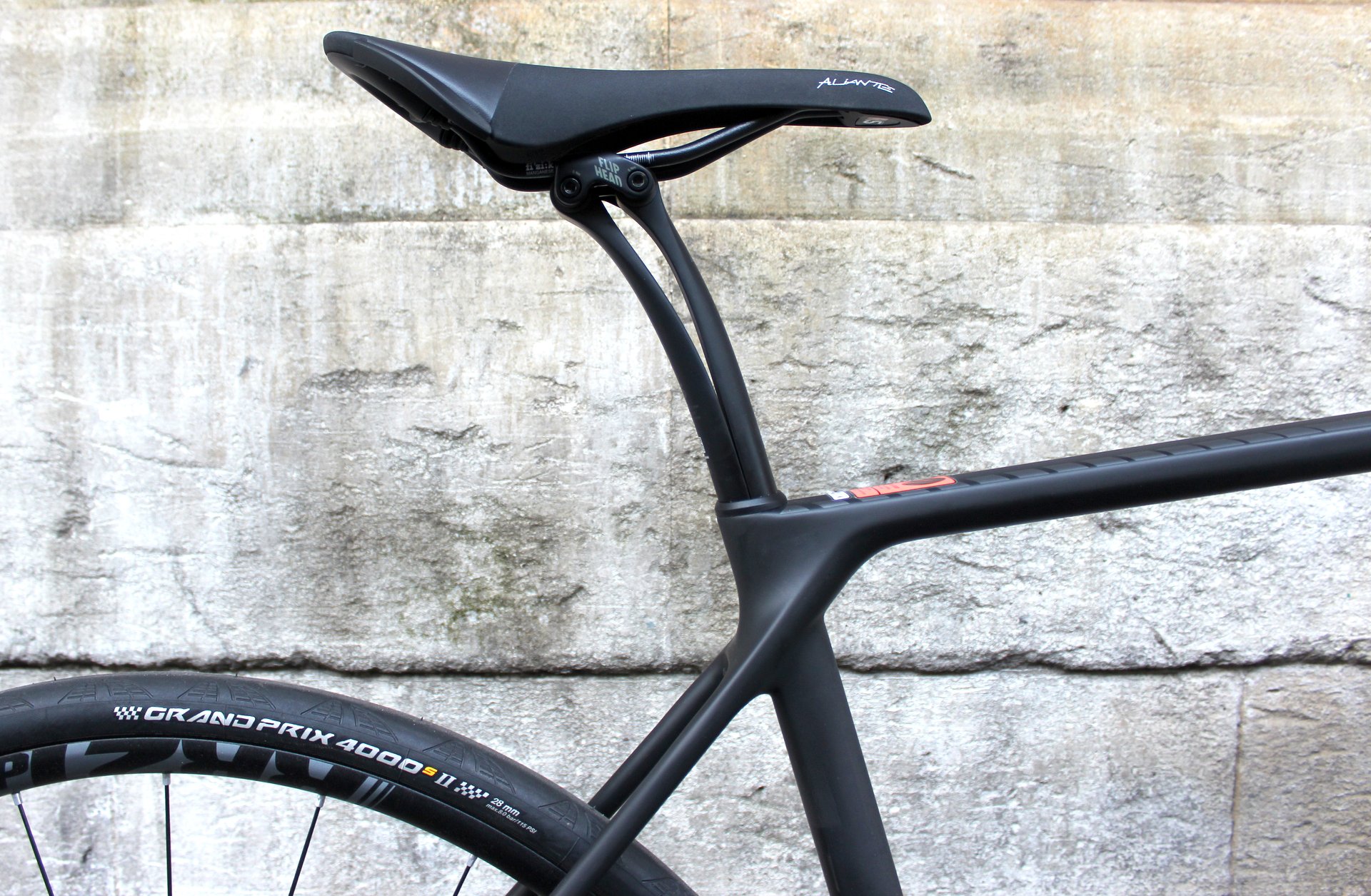 The leaf spring design offers significantly more flex than a conventional seatpost but the curved design also places the rider further behind the bottom bracket. Canyon say this can potentially have a negative impact on the rider’s ability to put power down, so they have added a subtle kink to the Endurace’s seattube to effectively shorten the toptube length without affecting the seattube angle.