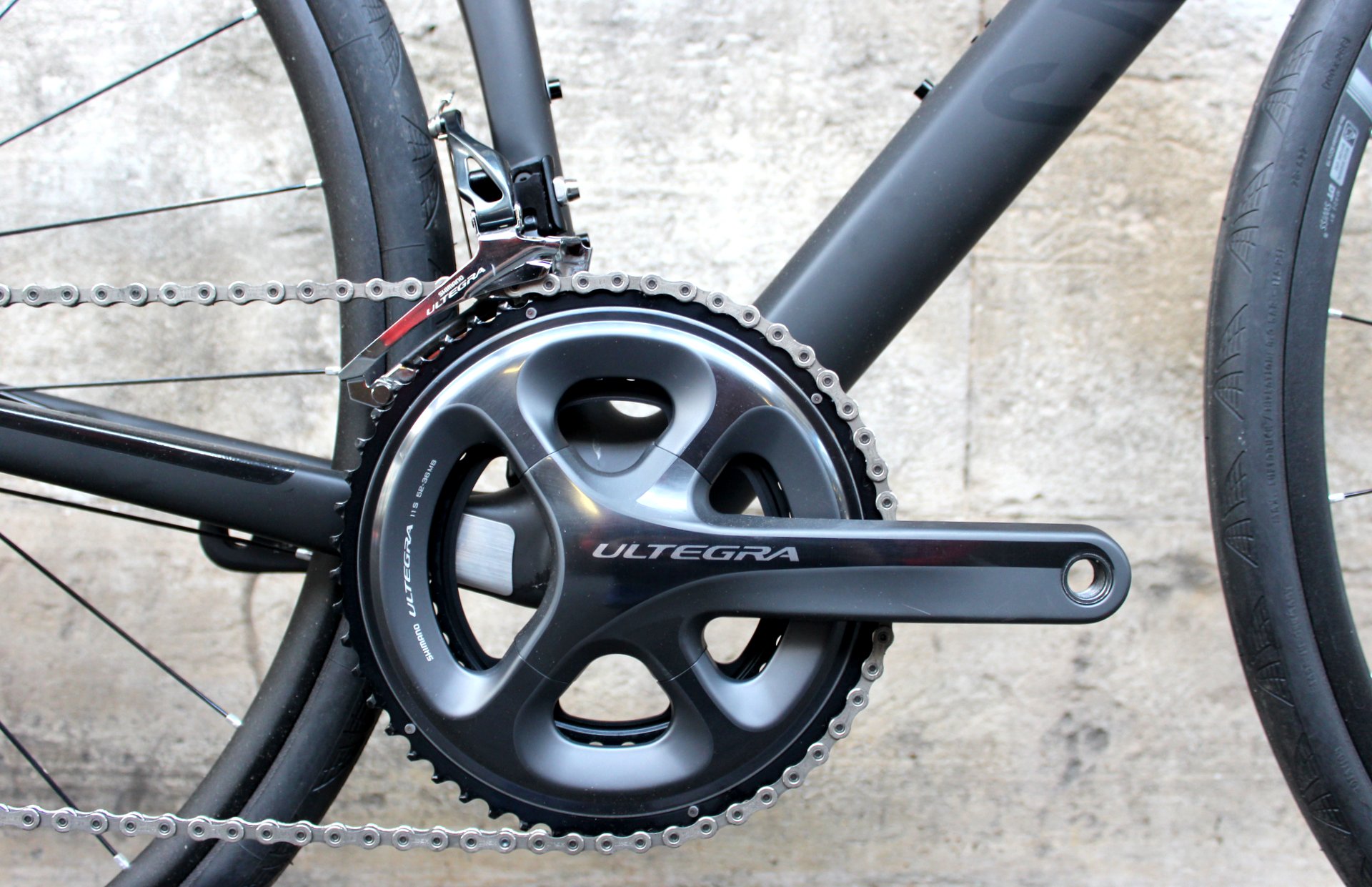 As we’ve come to expect from Canyon, no corners have been cut. That starts with a complete Shimano Ultegra groupset, with a 52-36t chainset paired with an 11-32t cassette. That might look an unusual setup on paper – a semi-compact chainset paired with a wide-ranging cassette – but it’s a smart choice.