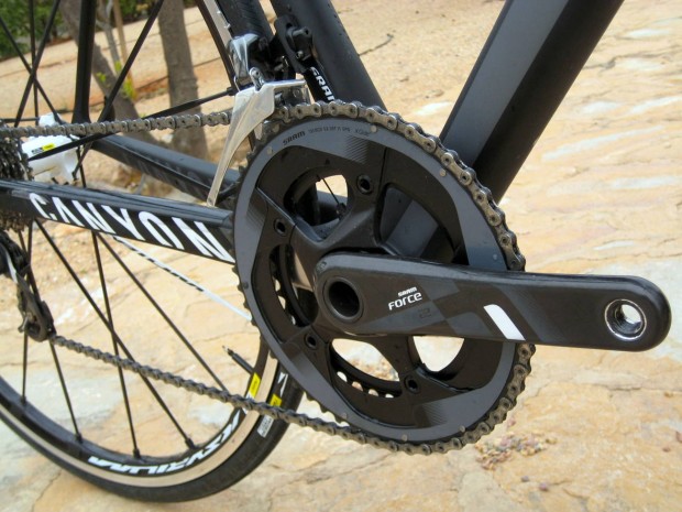 The groupset is deployed in its entirety and the 9.0 SL is specced as standard with a compact 50-34t chainset and 11-28t cassette to provide a wide spread of gears. It’s also available with standard 53-39t chainrings and a 11-25t cassette and that’s how our machine arrived, though we’ve swapped the rear block to an 11-28t setup to take the sting out of Andalucia’s long and plentiful climbs.