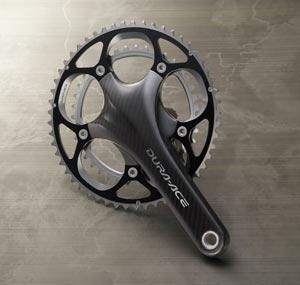 At the Eurobike show in August 2007 Shimano introduced the carbon fibre Dura-Ace FC-7800C crankset. Originally this crankset was designed to be compatible with the Dura-Ace 7800 series. However, with the introduction of the new Dura-Ace 7900 series this year Shimano has decided to adapt this crankset to be compatible with the new 7900 group instead. Furthermore, a special chainring set will be available that will make this crankset also compatible with Dura-Ace 7800.