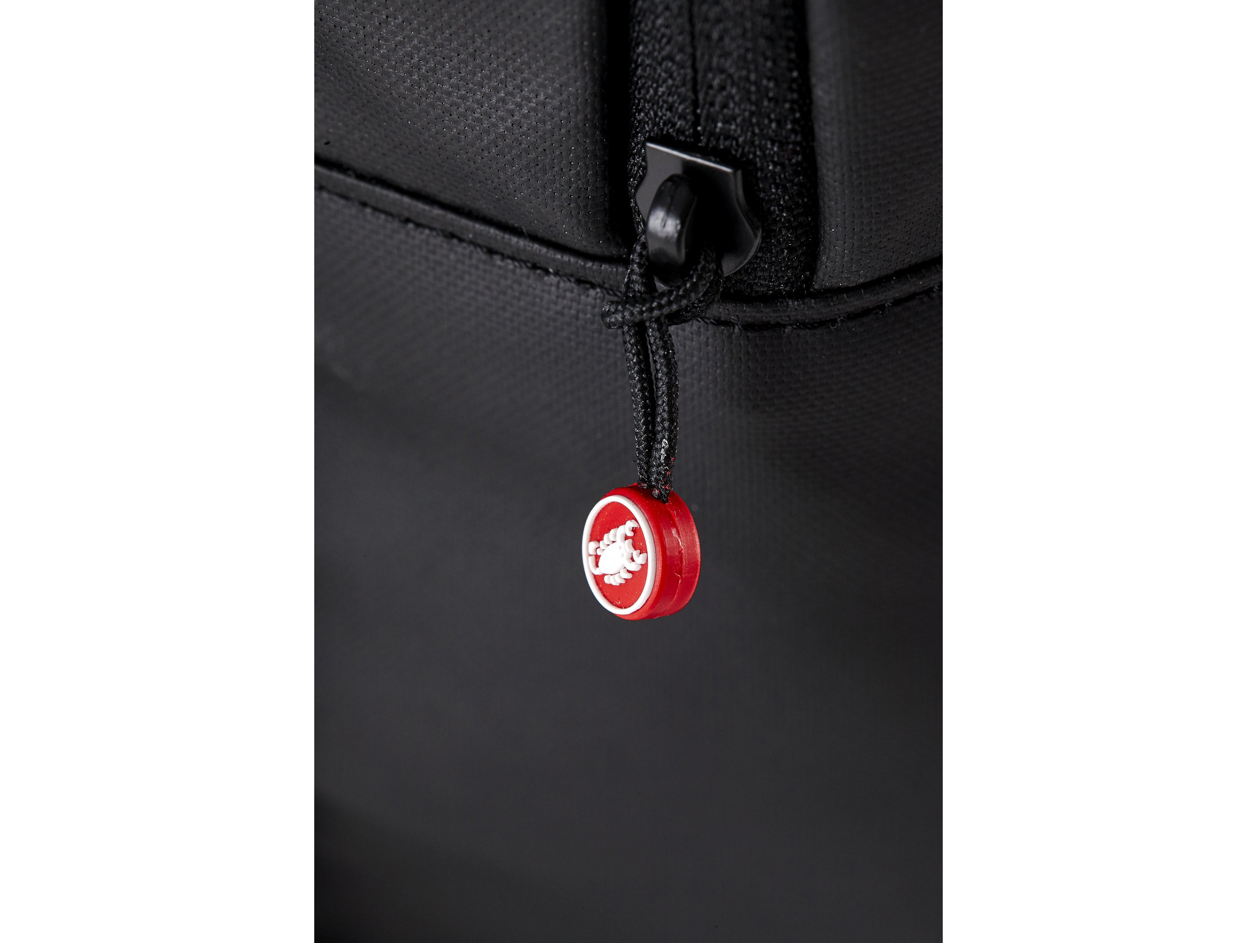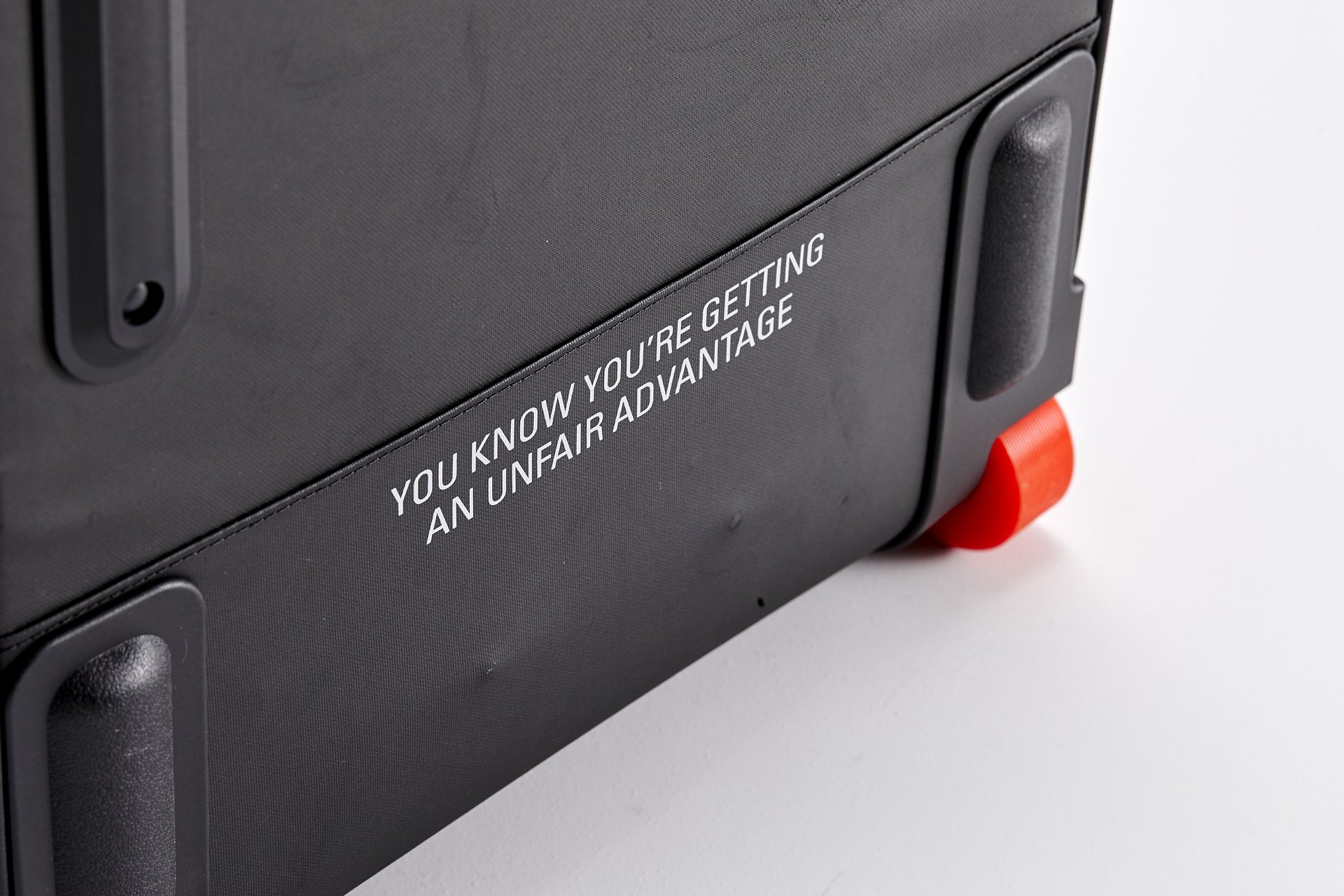 In all seriousness, though, Castelli have brought their usual understated style and attention to detail to the suitcase, and the wet black almost leather-look finish is complimented by a couple of smaller red and white scorpions on the outside.